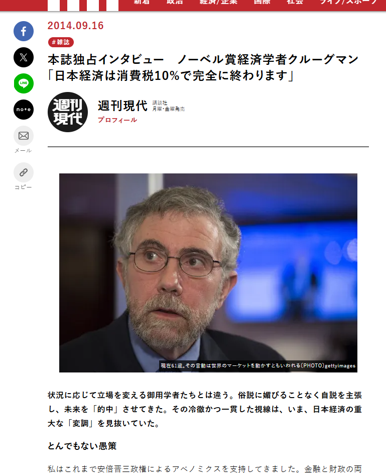 経済関係の過去記事なんですが、2014年のポール・クルーグマン氏の記事でして。
